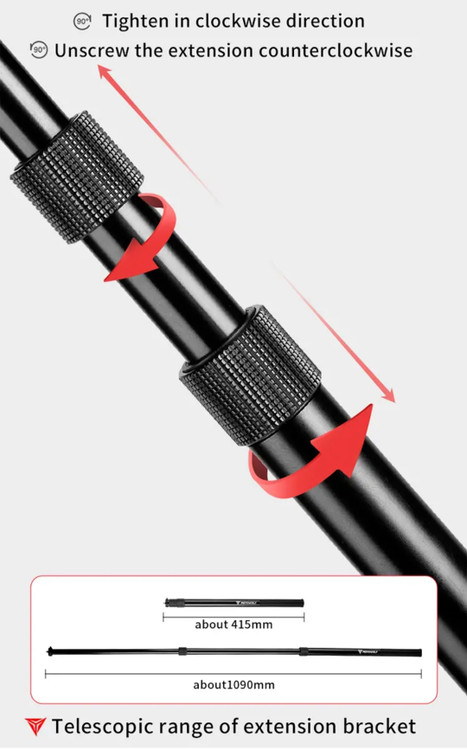 اندازه: در حالت بسته 415 میلیمتر / در حالت باز 1090 میلیمتر